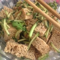麻酱烤麸的做法 首先把烤麩按照個人喜好切成...