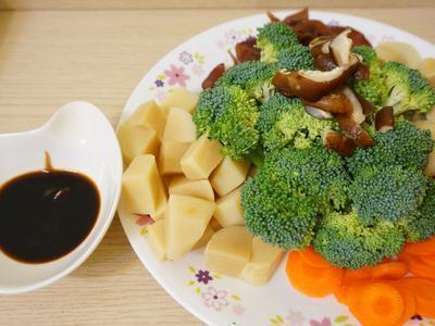 麵腸2條. 花椰菜1顆. 黑木耳1大朵. 沙拉筍3個. 薑片3片. 水100ml. 紅蘿蔔適量. 香菇適量. 素蠔油2茶匙. 醬油2茶匙. 醬油2茶匙. 紅糖1/2茶匙. 胡椒粉少許。 |